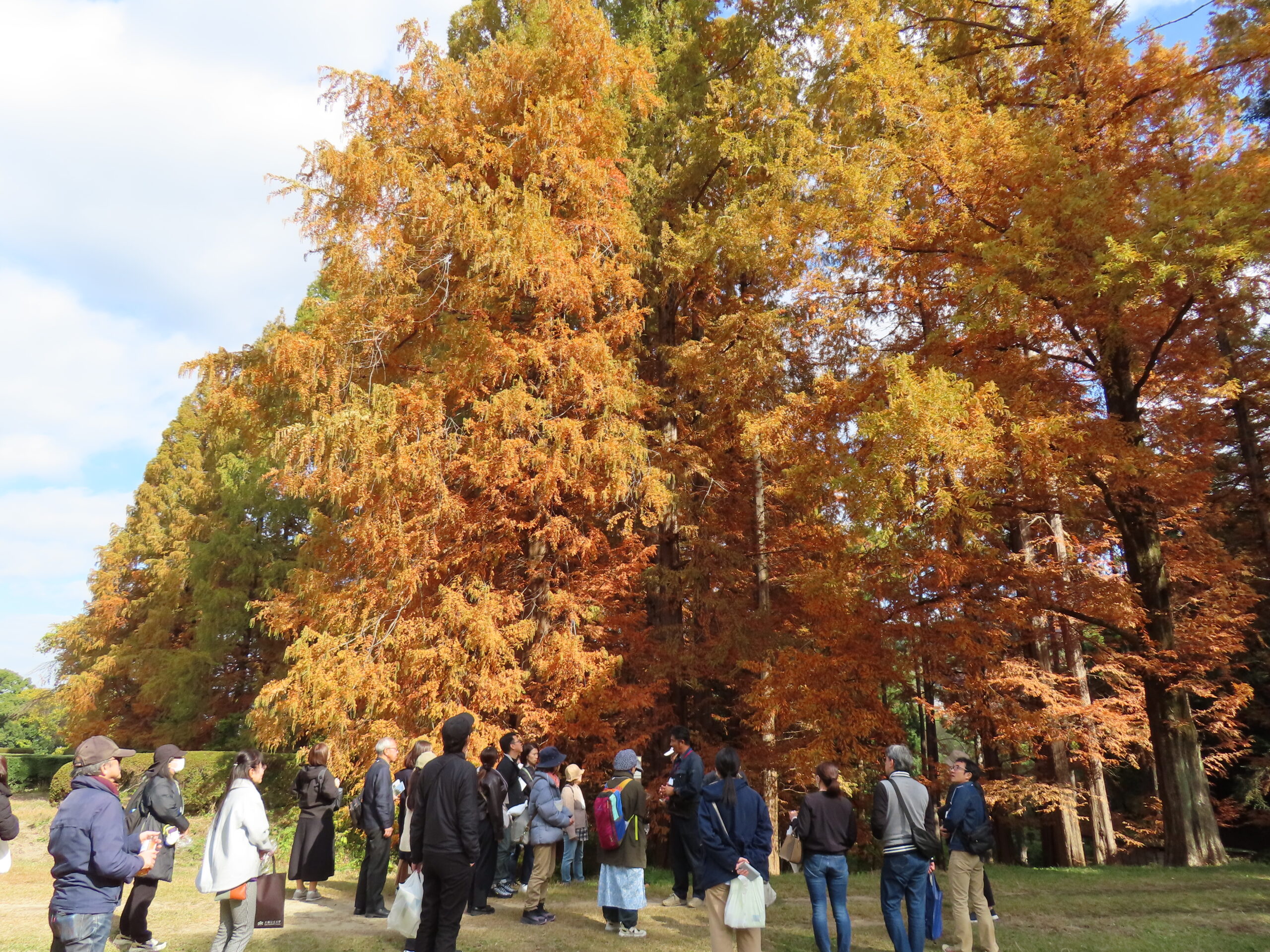 かつて、各国の植物学者が手を取り合い、この世に復活させたメタセコイヤの花言葉「平和」に込めた想いを切に願った一コマでした。